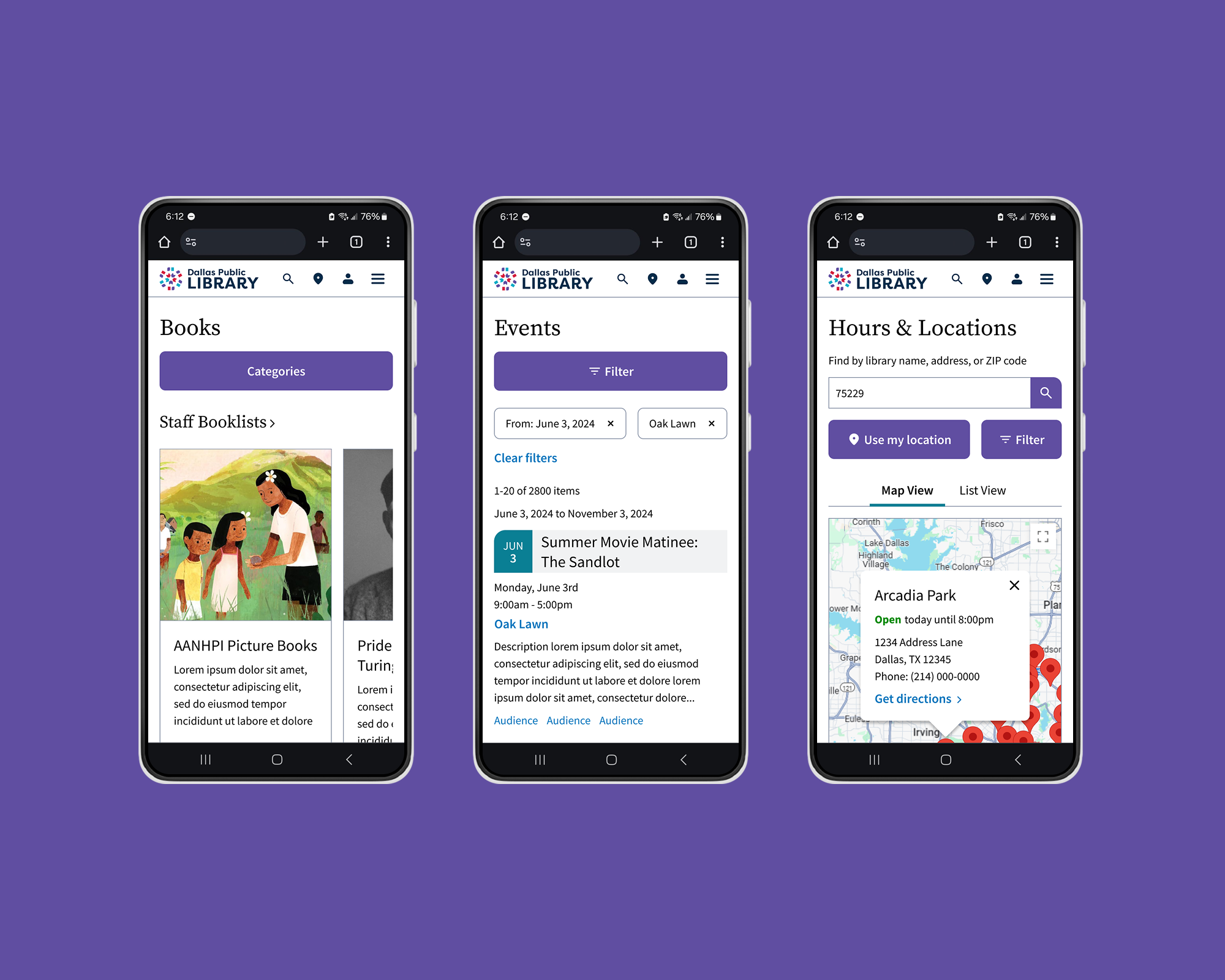 📚 Re-envisioning responsive layouts that enable mobile users to easily browse media, events, and locations