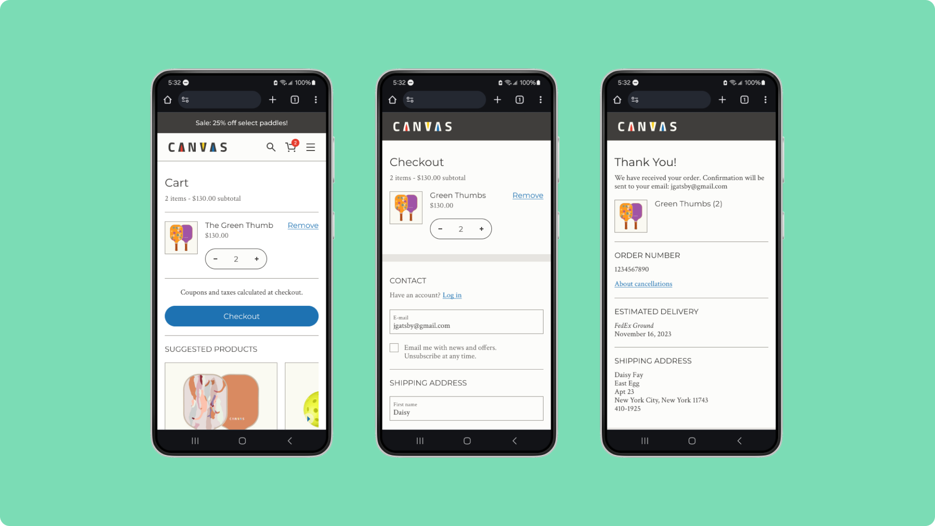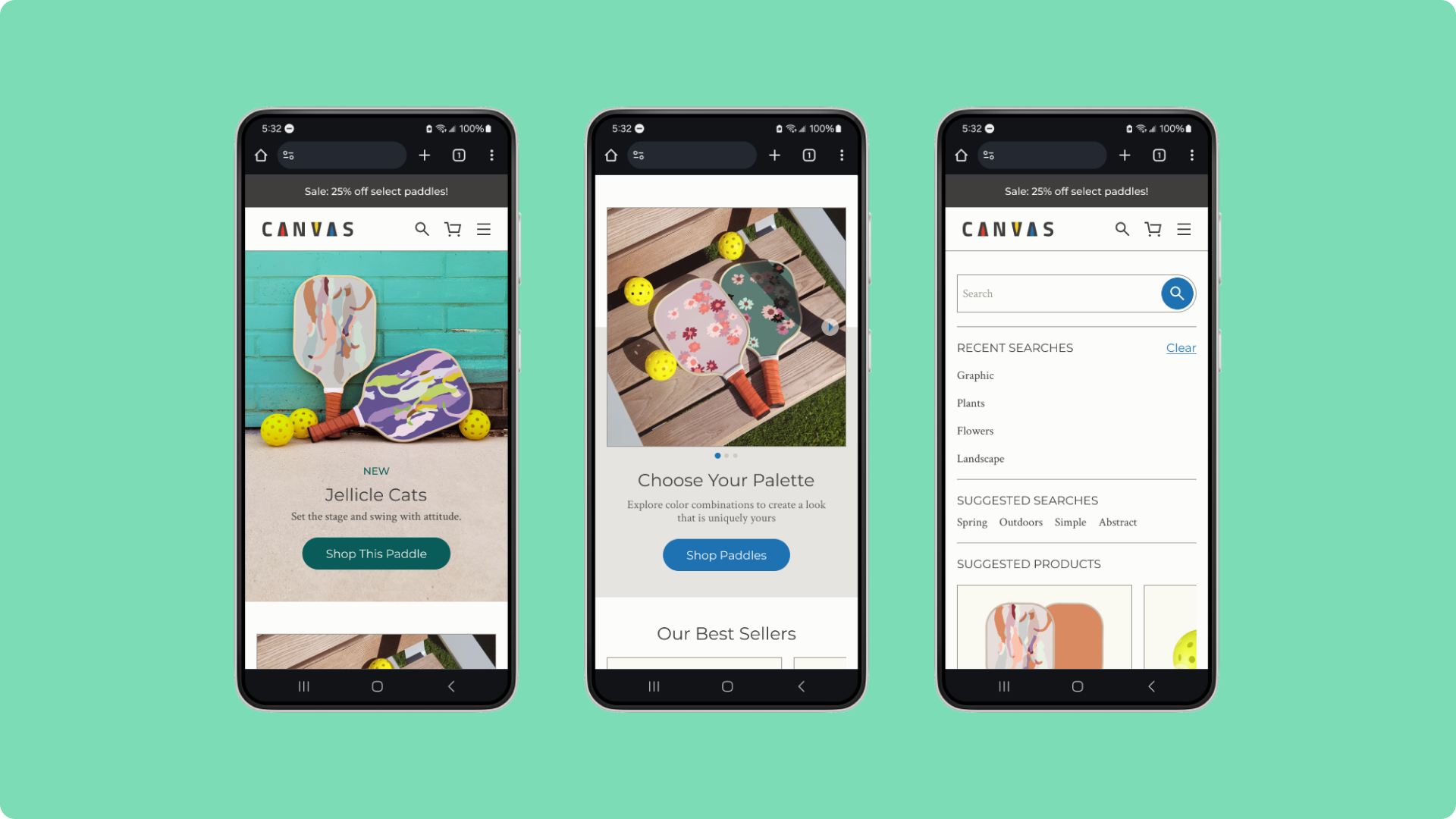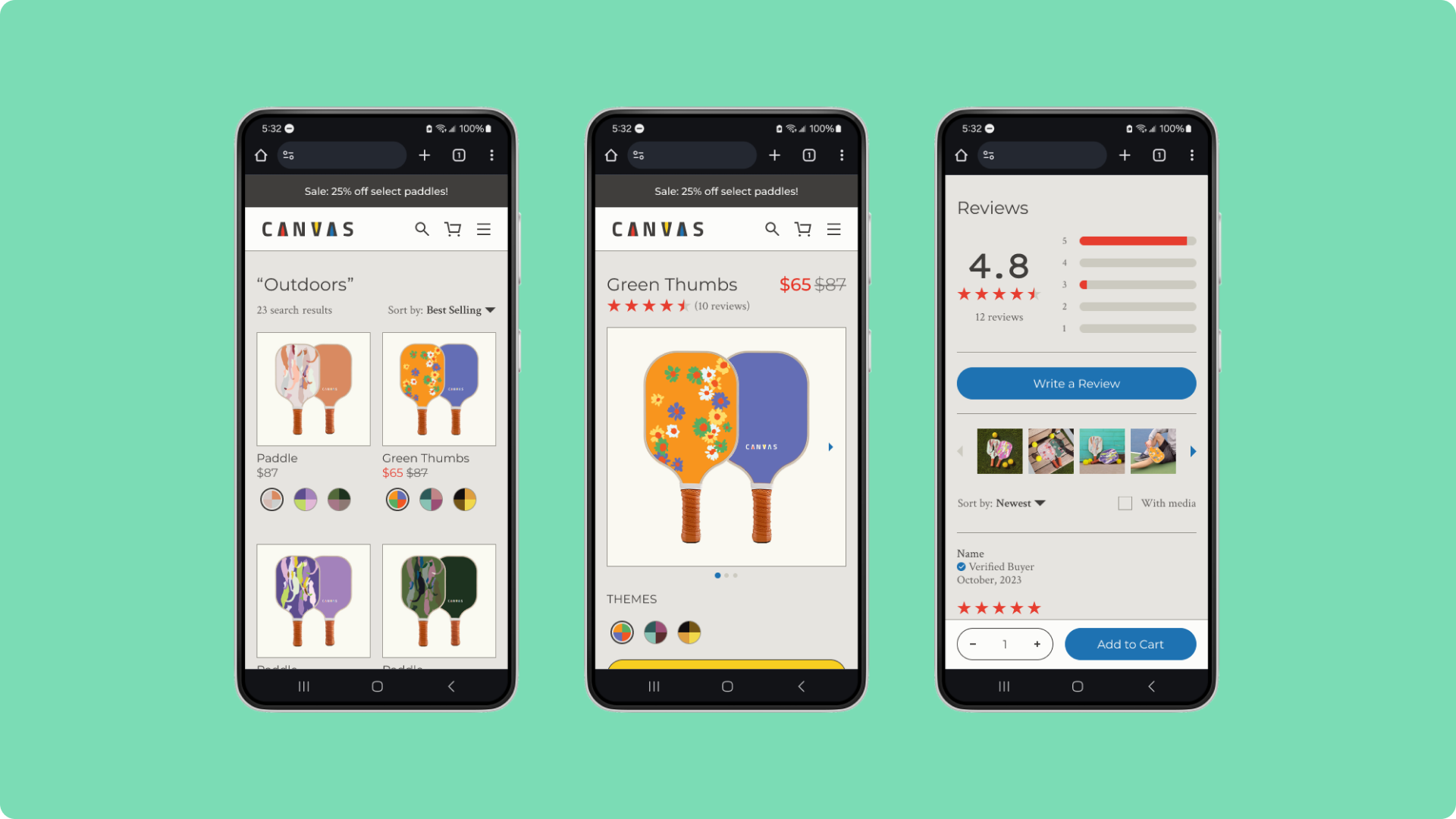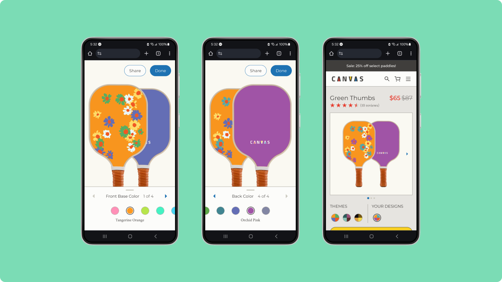 Canvas offers a guided customization tool, enabling customers to choose from a variety of colors for their paddle.