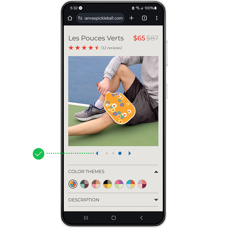 Users need a clear distinction between the swatches carousel and photos carousels to ensure that they don’t miss images.