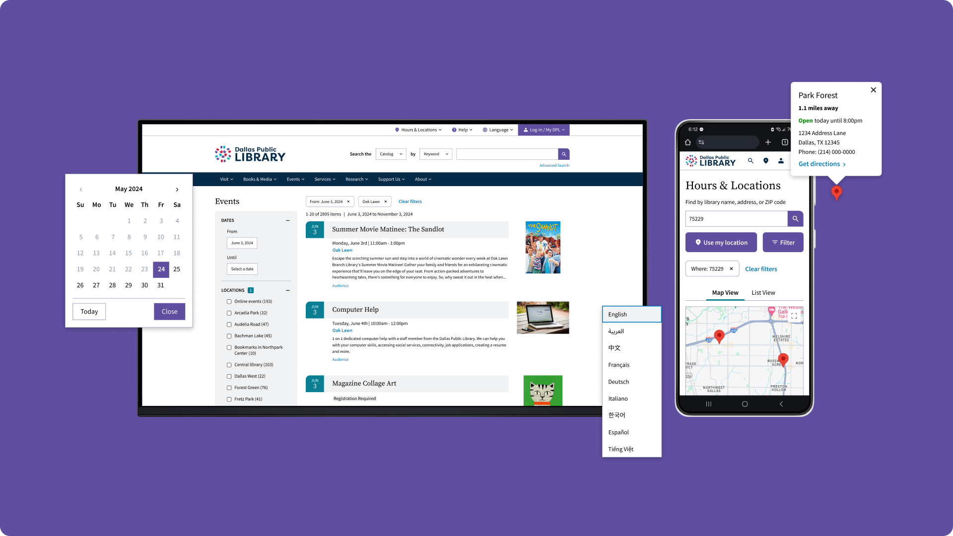 The Dallas Public Library website connects visitors to a variety of services, from borrowing books and media to free online courses. The website also informs visitors about upcoming events at the libraries, like extracurricular activities, financial planning assistance, and voting.