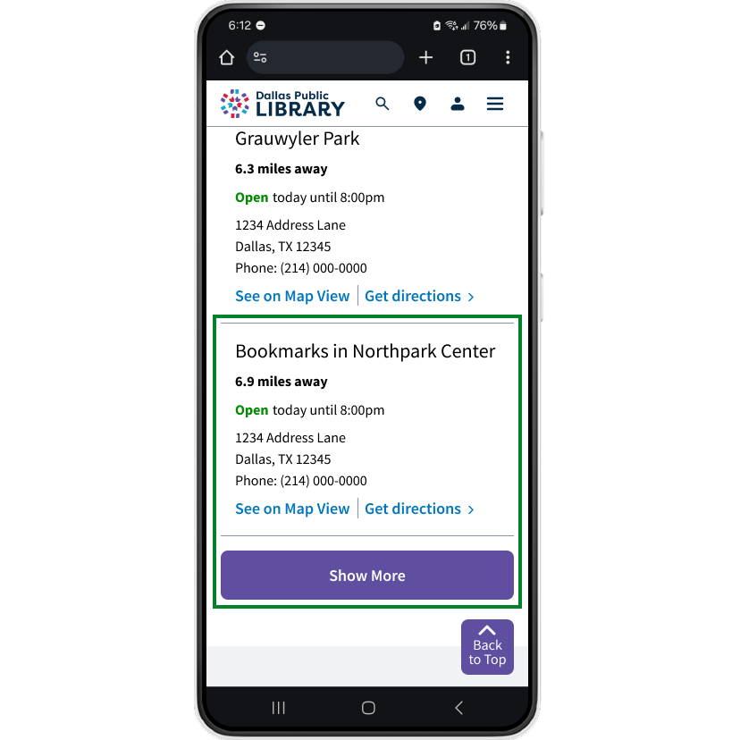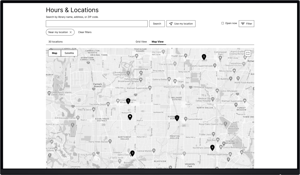 Visitors can quickly find a library via the map or by entering a location.